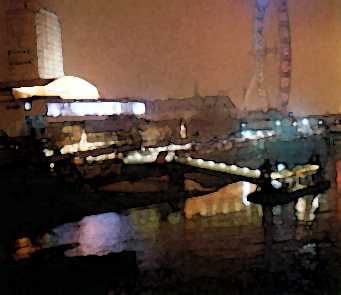 London's South Bank at night, including the BA 'London Eye', December 2000.
